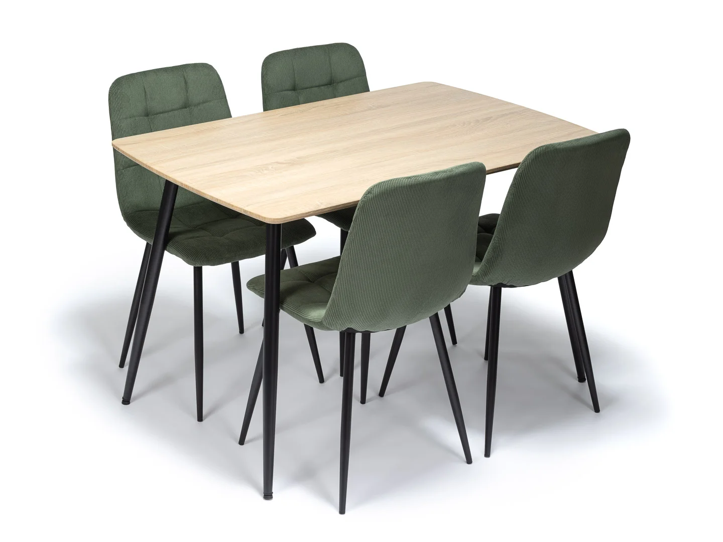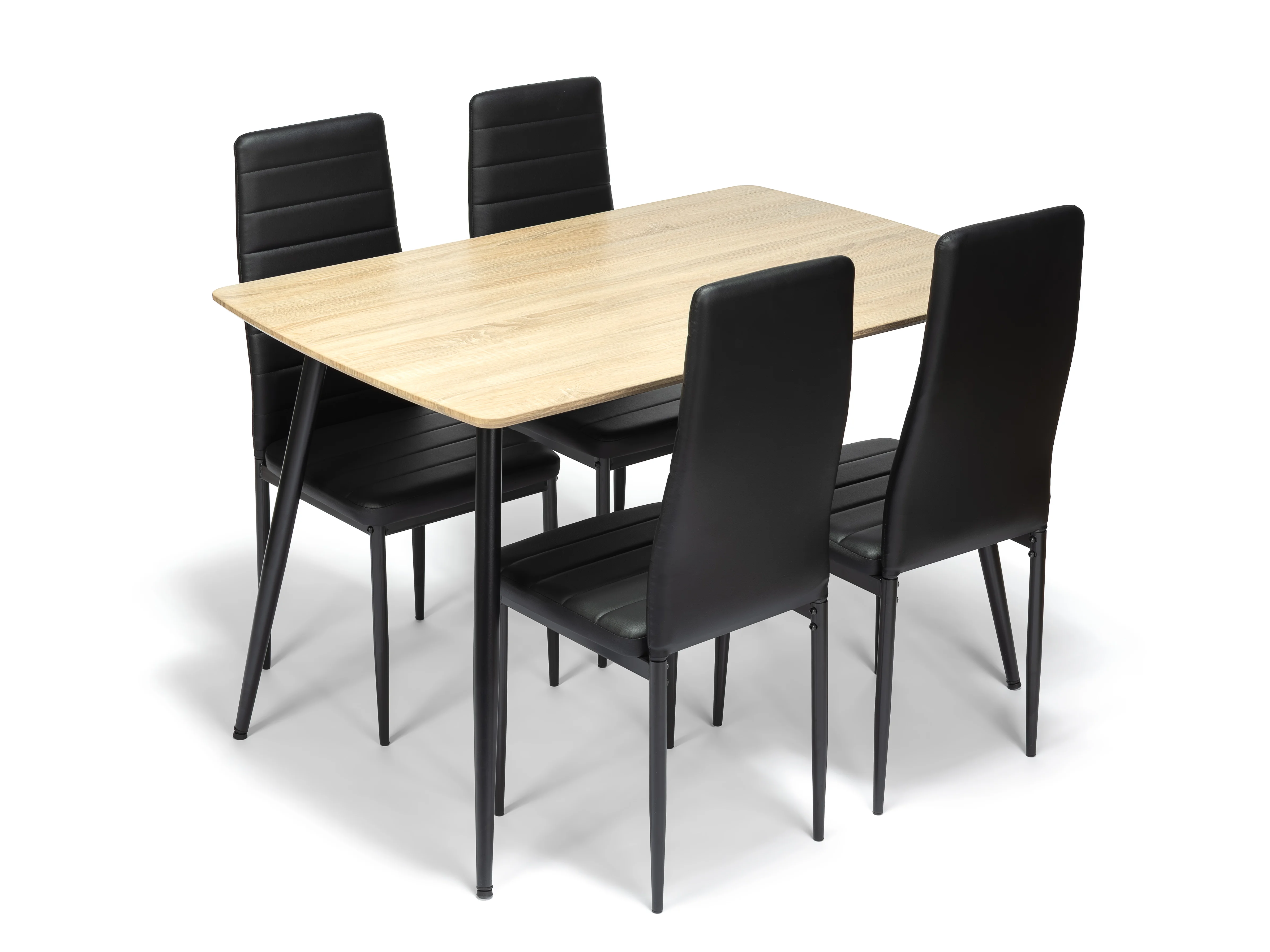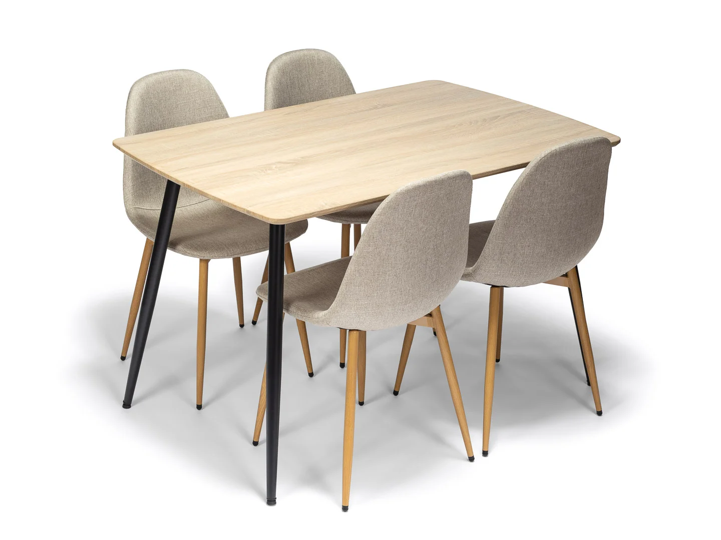 Jídelní stůl v dekoru přírodního dřeva je ideálním spojením moderního designu a přirozené elegance. Teplý odstín dřevěné desky vytváří příjemnou atmosféru a přináší do prostoru pocit útulnosti, zatímco minimalistické černé kovové nohy dodávají stolu moderní a lehce industriální charakter.