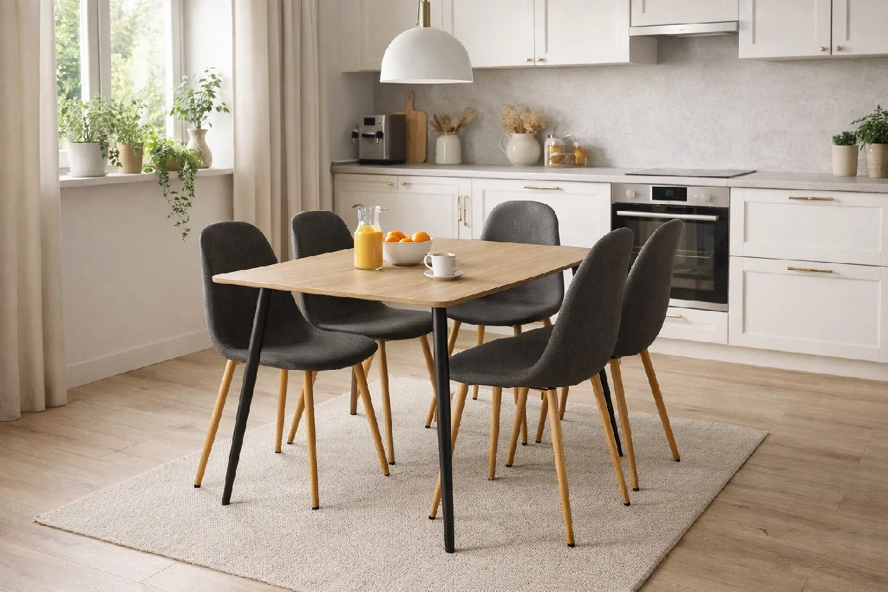Díky jednoduchému a nadčasovému designu se stůl snadno kombinuje s různými typy jídelních židlí a hodí se jak do moderních, tak do skandinávských nebo minimalistických interiérů. Stabilní konstrukce zajišťuje pevnost a dlouhou životnost i při každodenním používání.