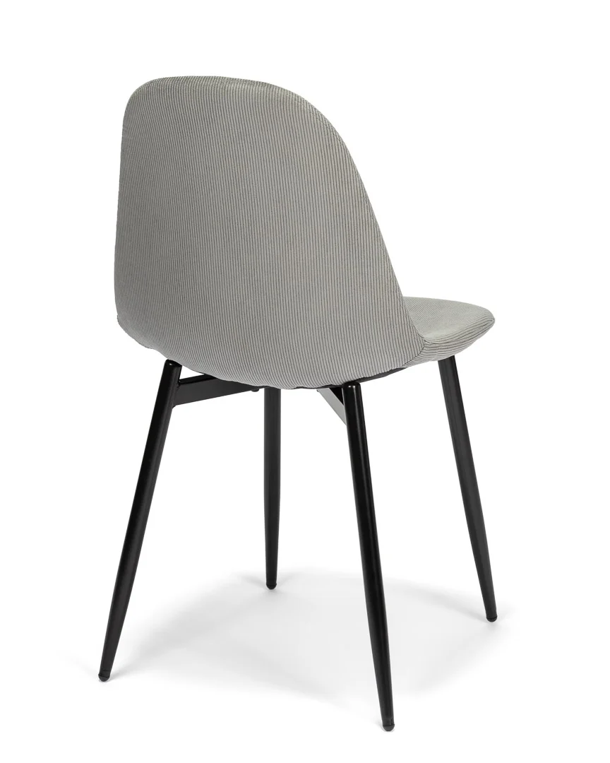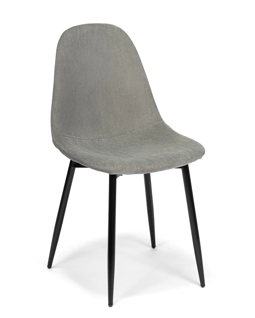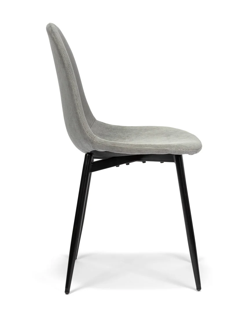 Elegantní židle s moderním minimalistickým vzhledem. Pohodlné čalounění v šedém manšestrovém provedení. Stabilní kovové nohy v černém provedení. Ideální doplněk do jídelny, kuchyně i pracovny. Spojuje komfort, nadčasový design a odolnost.