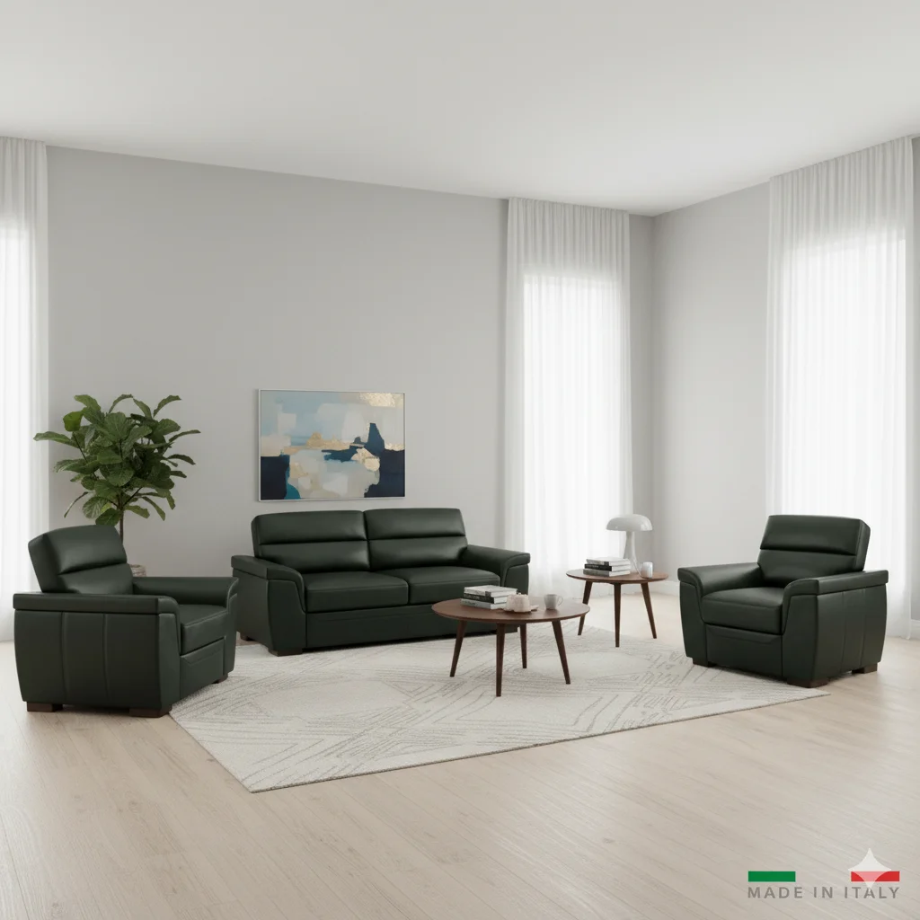 Pozdvihněte atmosféru svého interiéru s exkluzivní koženou sedací soupravou ROSSO II 3+1+1, která představuje spojení rafinované estetiky, prvotřídního komfortu a nezpochybnitelné italské kvality. Tato sestava, skládající se z trojmístné pohovky a dvou elegantních křesel, je potažena tou nejlepší přírodní italskou kůží, jež slibuje nejen mimořádnou odolnost, ale i smyslový zážitek při každém doteku.