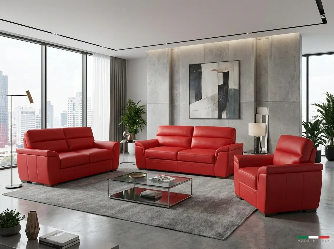 Pozdvihněte úroveň svého obývacího pokoje s luxusní koženou sedací soupravou ROSSO II 3+2+1, která ztělesňuje dokonalou harmonii klasického designu, výjimečného komfortu a prvotřídní kvality. Tato souprava, zahrnující prostornou trojmístnou pohovku, dvoumístnou pohovku a elegantní křeslo, je vyrobena z té nejkvalitnější přírodní italské kůže, která zaručuje nejen dlouhou životnost, ale i nezaměnitelný pocit luxusu při každém dotyku.