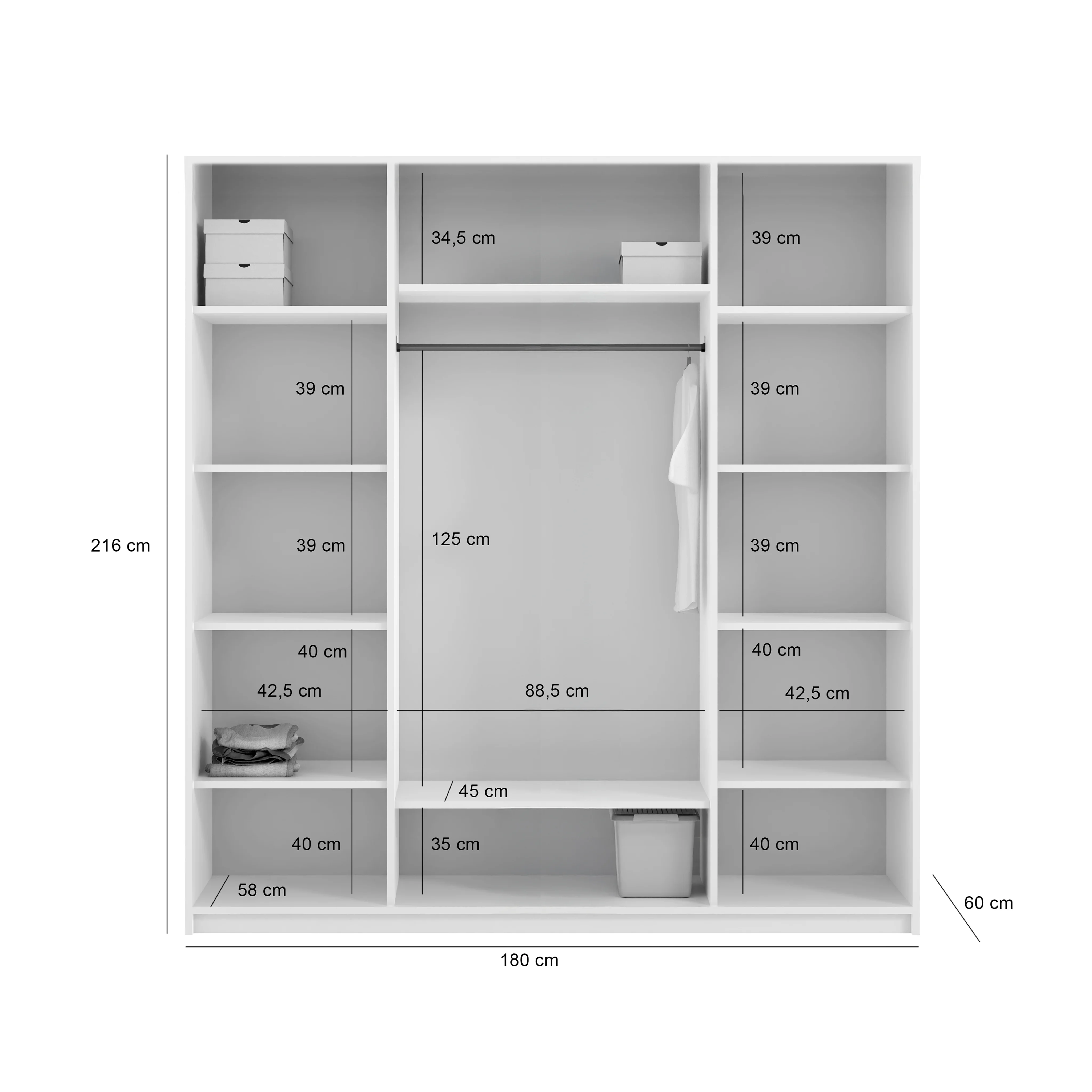 Hledáte úložné řešení, které je nejen maximálně praktické, ale stane se i skutečnou ozdobou vaší ložnice? Šatní skříň NICEA 180 je navržena tak, aby splnila i ty nejvyšší nároky na moderní design a chytrou organizaci. Její čisté linie a nadčasová elegance promění váš pokoj v oázu klidu.