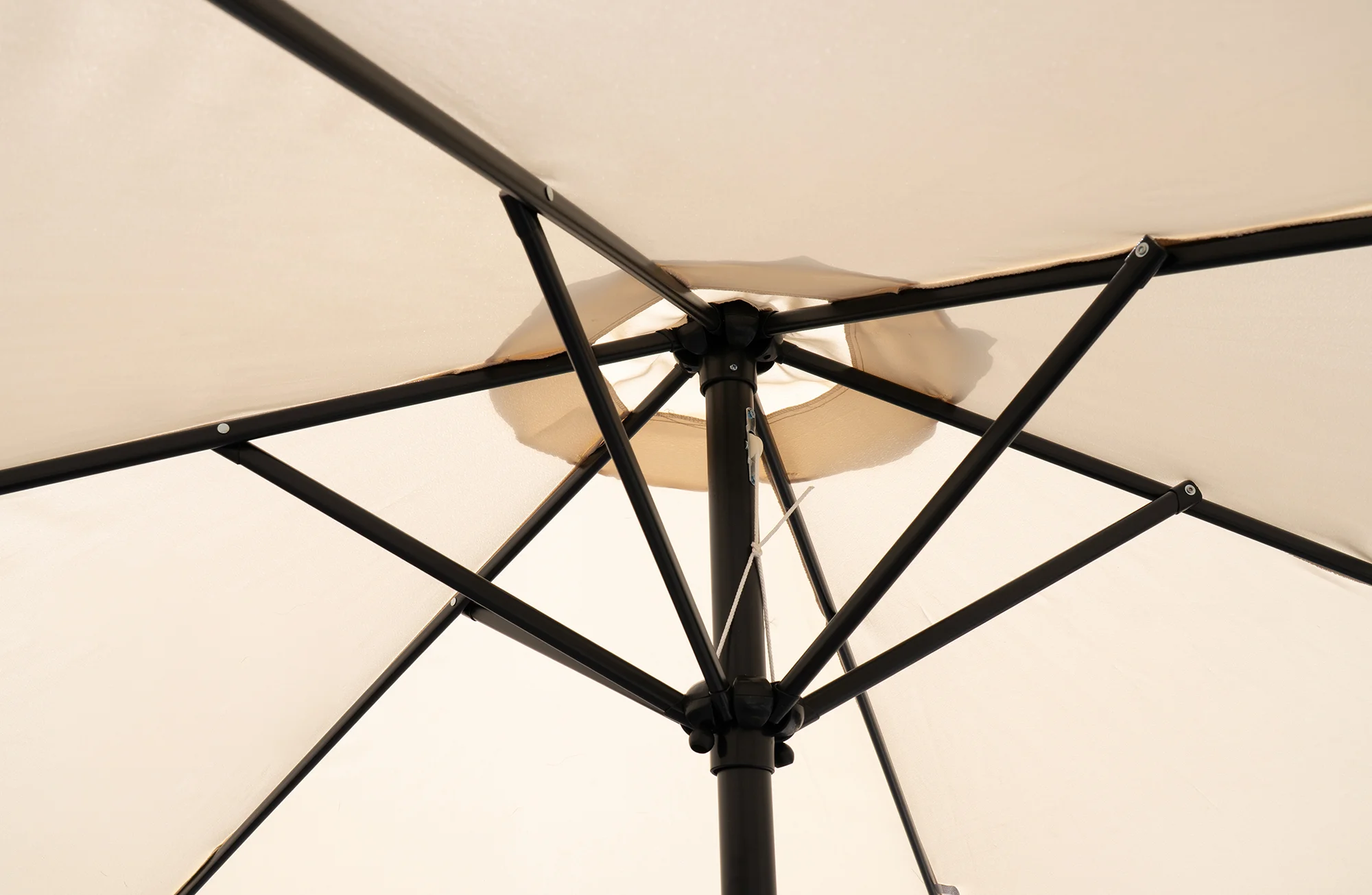 Světlá látka působí lehce a vzdušně, zatímco tmavá konstrukce dodává slunečníku stabilní a nenápadný vzhled. Slunečník je vhodný pro každodenní použití a ocení ho každý, kdo hledá jednoduché řešení bez zbytečných komplikací.