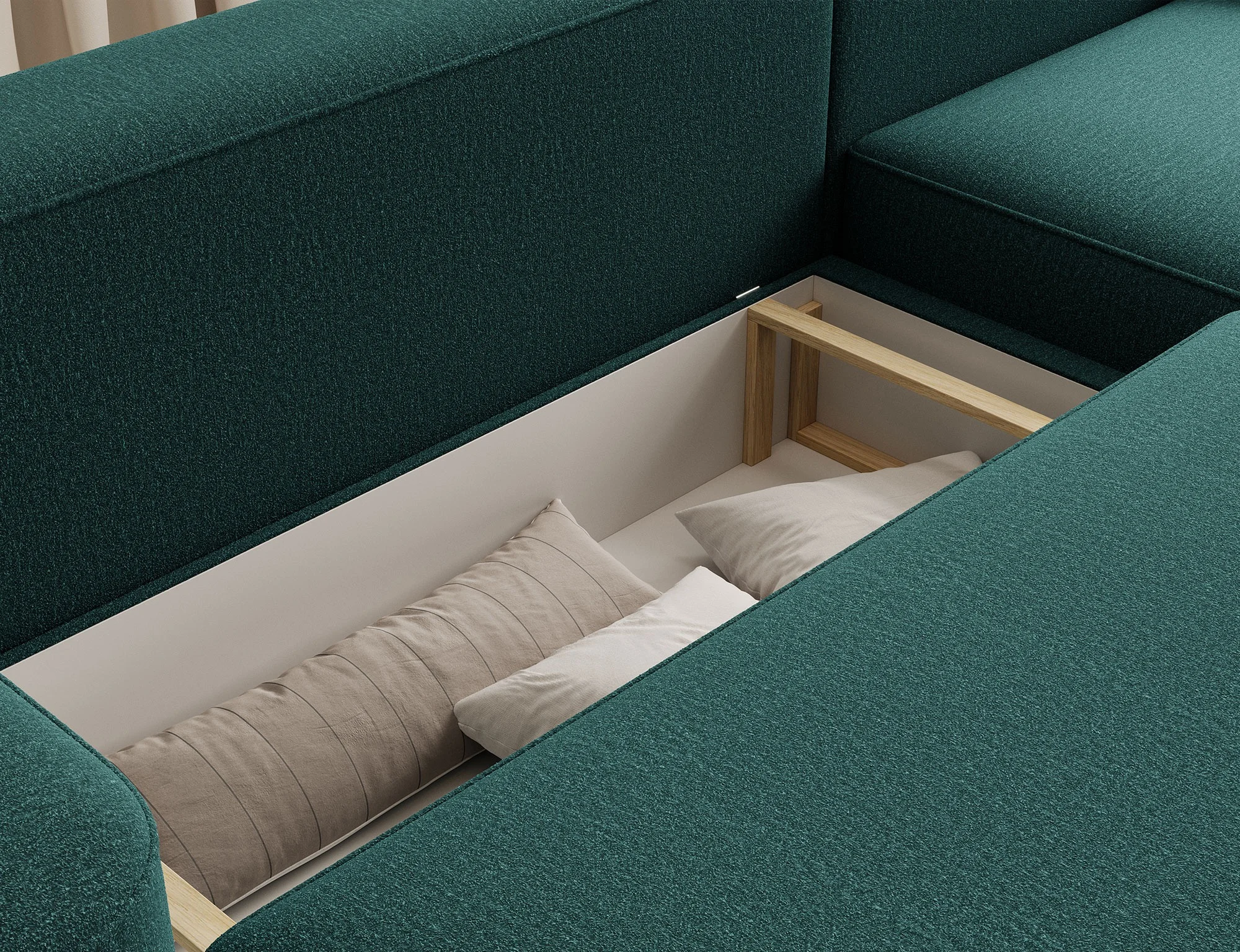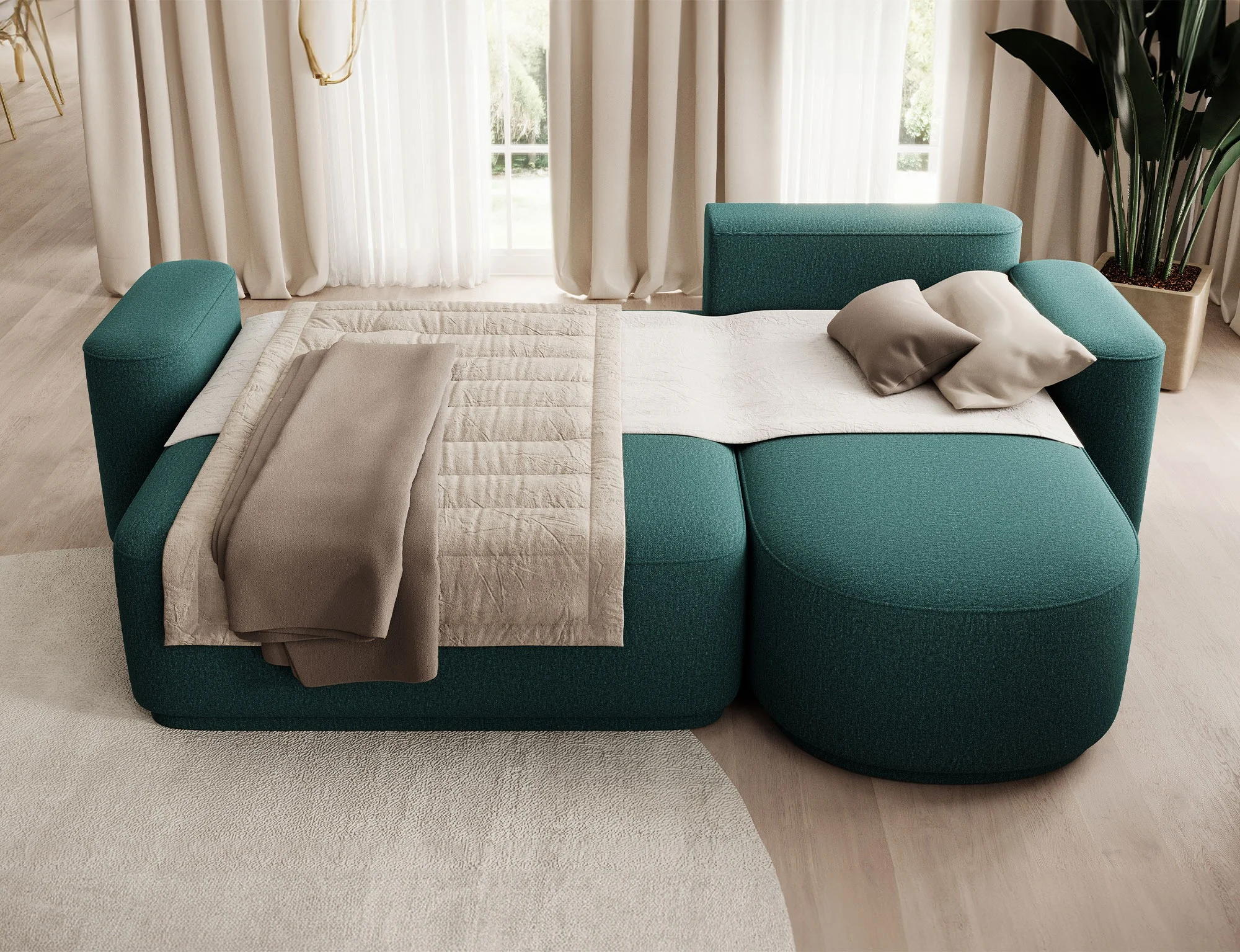 Rohová pohovka RUBY má také zabudovanou funkci příležitostního spaní. Lze ji snadno přeměnit na pohodlnou postel, což z ní dělá skvělou postel pro hosty nebo vyhrazené místo na spaní v menších bytech. Další výhodou provedení je kontejner na lůžkoviny, který usnadňuje uspořádání prostoru. Není divu, že rohová pohovka RUBY odpovídá potřebám moderních uživatelů!