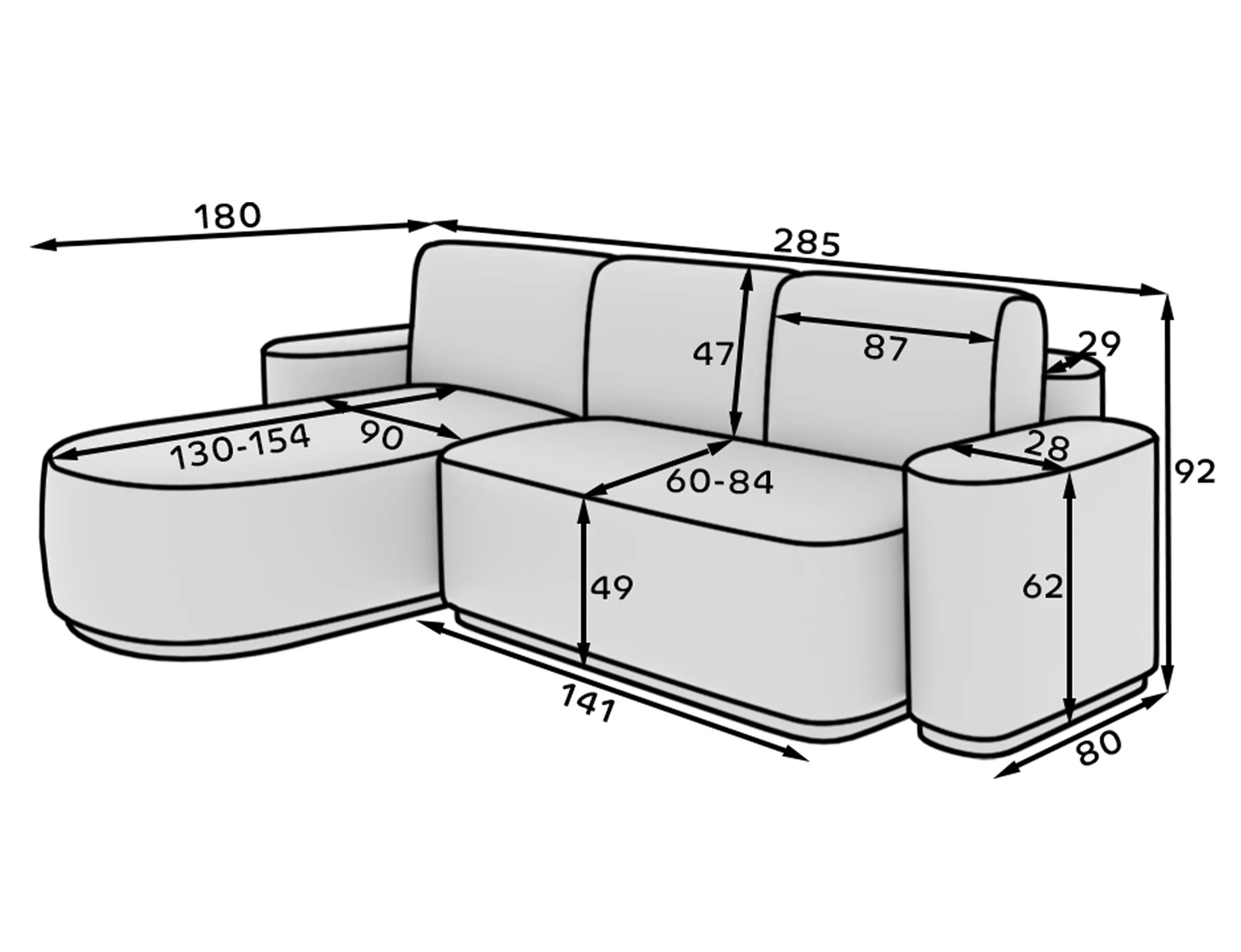 | Hloubka sedu | 60-84 cm |