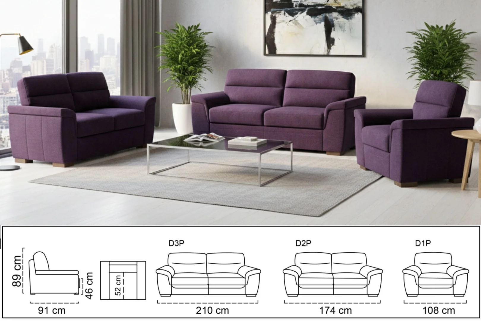 | Trojmístná pohovka (3P) | 210 cm | 1 ks | 3 osoby |
