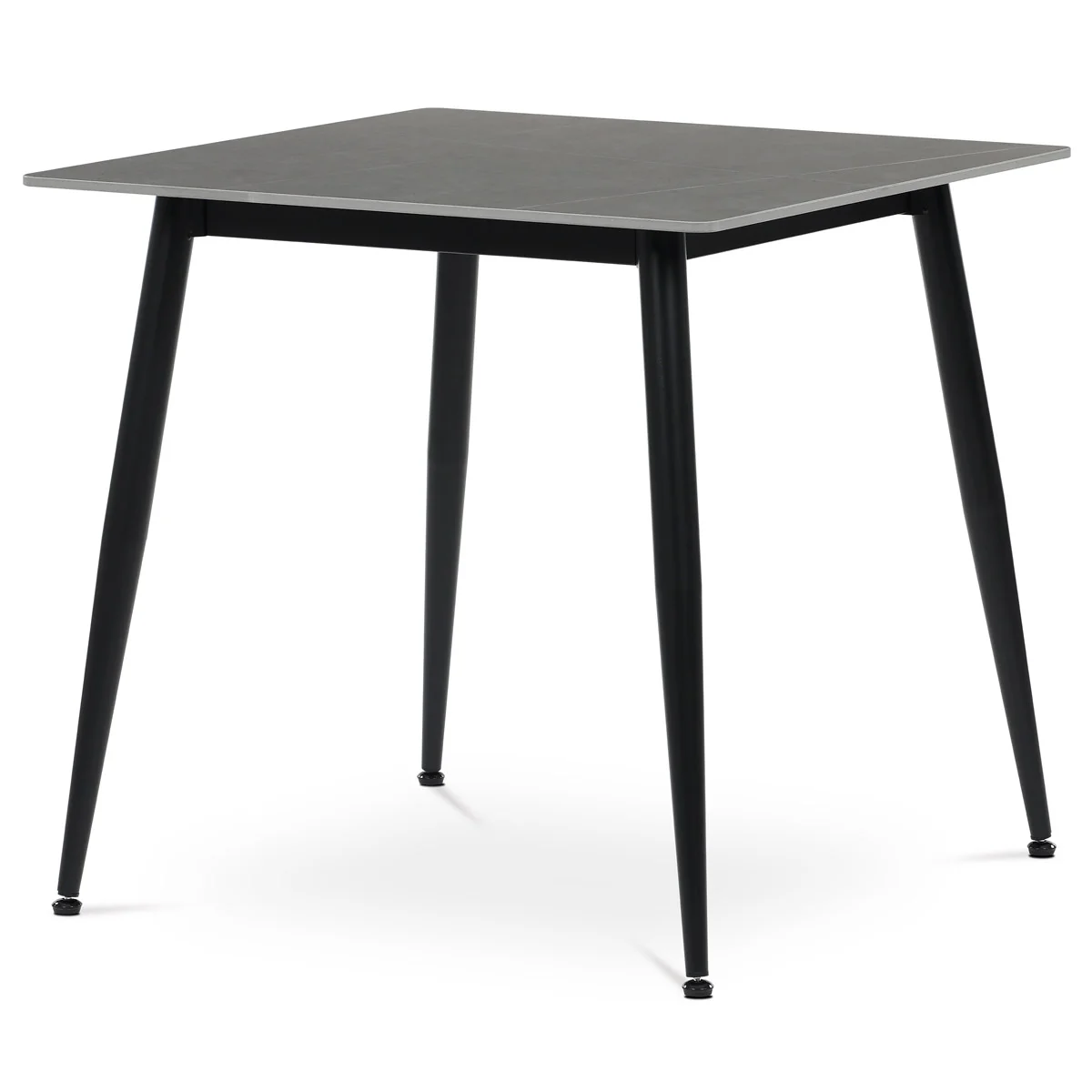 Jídelní stůl o rozměru 80x80 cm s keramickou deskou v šedém mramorovém dekoru nabízí moderní a odolné řešení pro každou jídelnu. Deska je vyrobena z matné keramiky, která je snadno udržovatelná a odolná vůči poškrábání i vysokým teplotám. Stabilní kovové nohy v černém provedení jsou opatřeny rektifikačními patkami, které umožňují vyrovnání nerovností podlahy a zajišťují pevnou oporu. Minimalistický design s tenkou deskou a mírně zkosenými nohami podtrhuje současný styl nábytku. Nosnost stolu odpovídá běžnému užívání v domácnosti i menších provozech.
