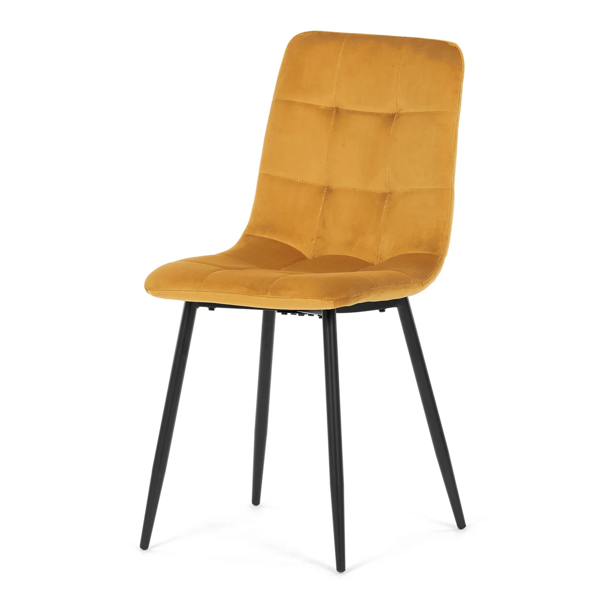 Jídelní židle značky Autronic v elegantní žluté barvě je ideální volbou pro stylové interiéry. Čalounění ze sametové látky působí luxusně a zajišťuje pohodlí při sezení. Decentní prošívání zdůrazňuje precizní zpracování, zatímco stabilní černé kovové nohy podtrhují minimalistický vzhled s industriálním nádechem. Díky kvalitnímu polstrování z PU pěny je vhodná pro každodenní stolování i delší posezení. Tato židle přináší harmonii mezi funkčností a moderním designem, který oživí každou jídelnu.